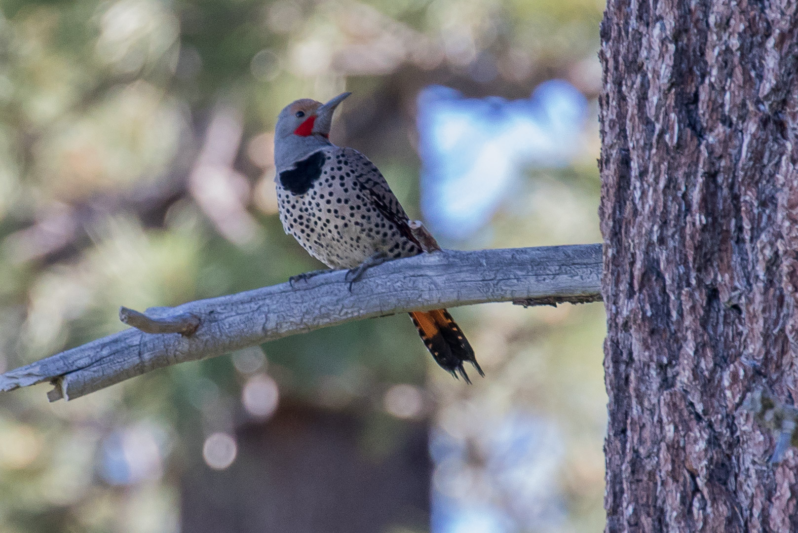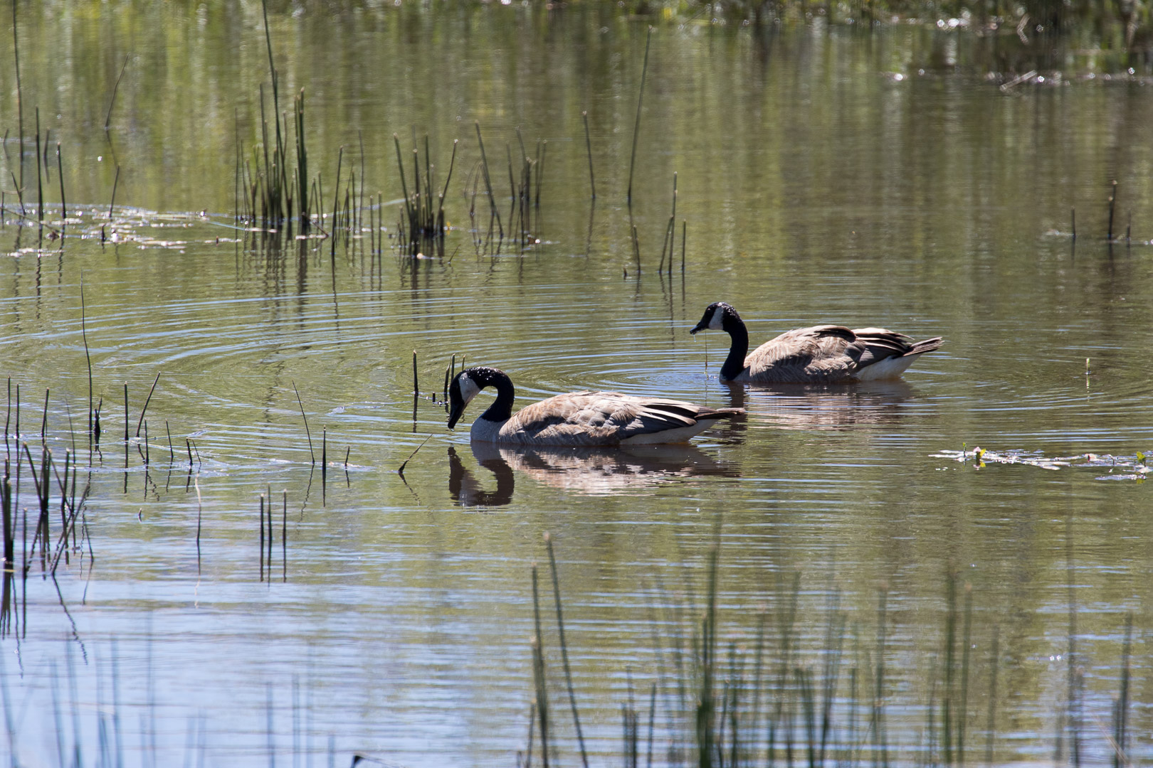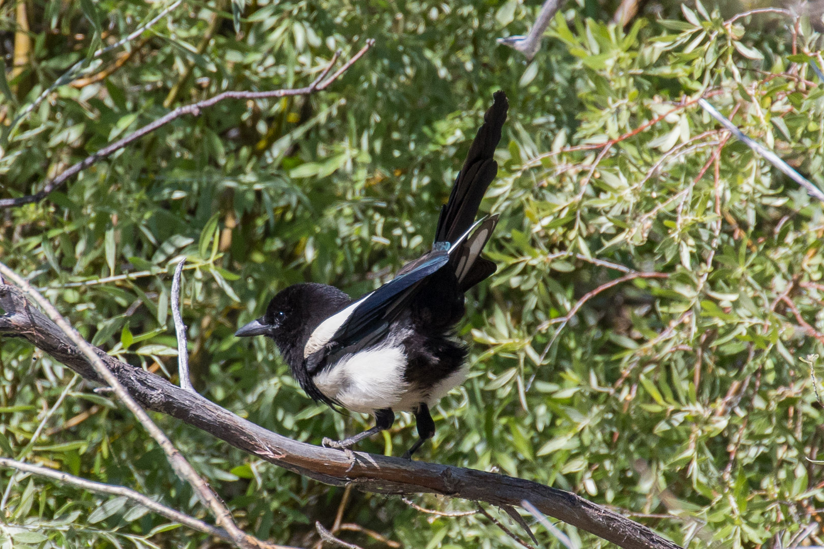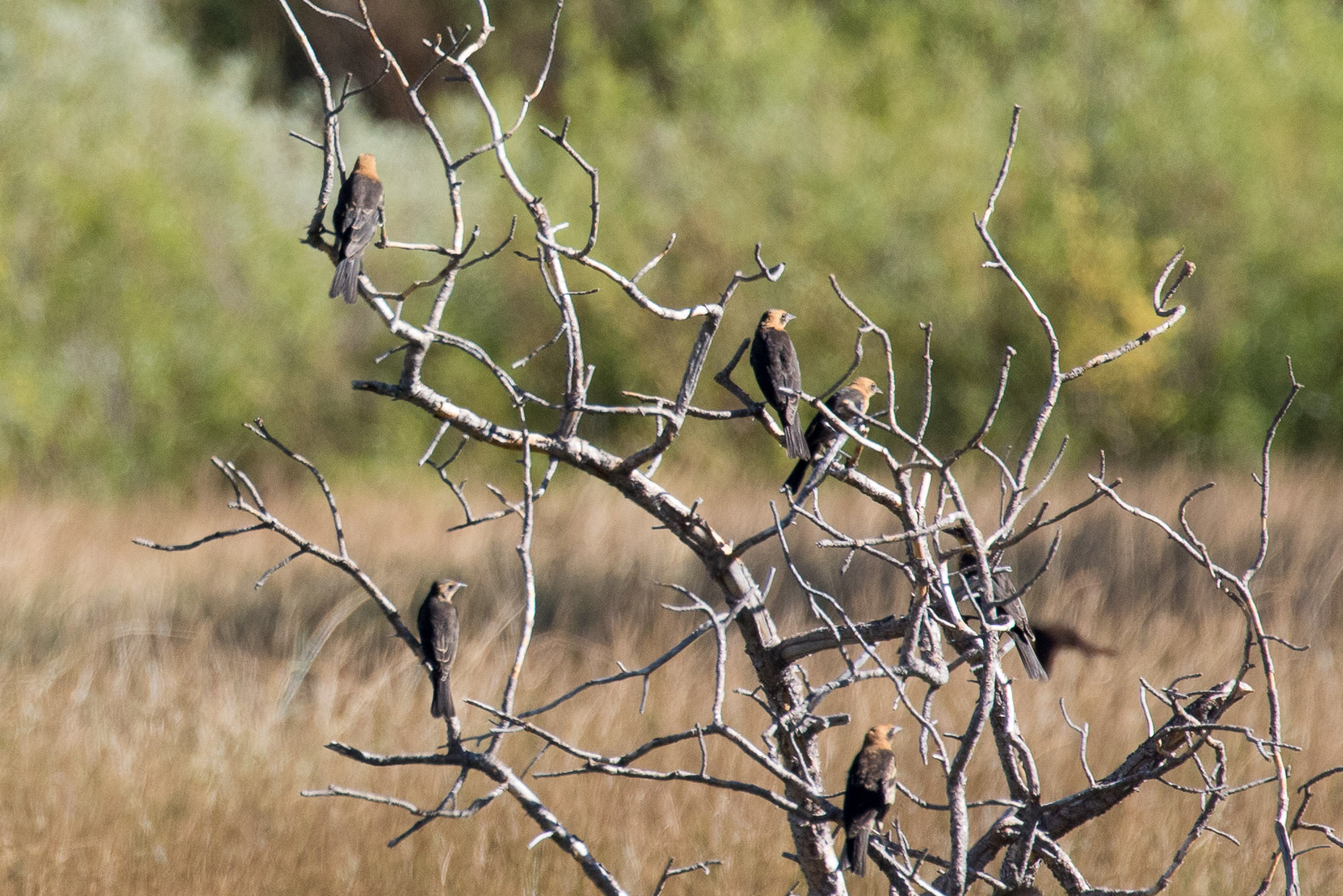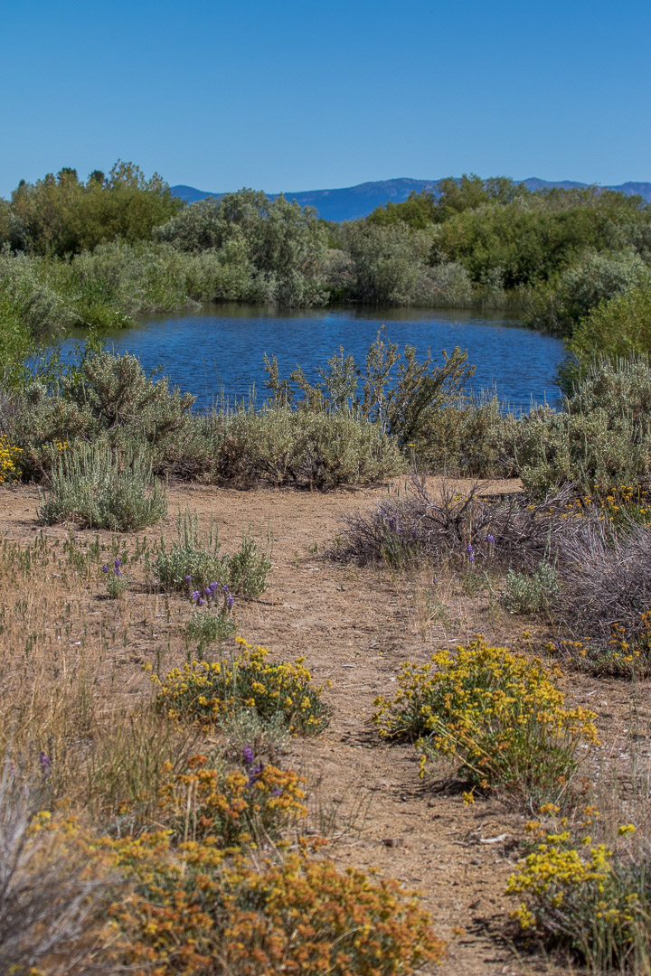 Today I went with Doaf to the Upper Truckee River meadows area, in South Lake Tahoe. First we tried the east side of the marsh, accessing it off San Francisco Road. We immediately heard the raucous sounds of the Yellow-Headed Blackbirds that were numerous in the area. I had seen these in the Reno marshes and in my Reno backyard, but this was the first time I’d seen them in the TBY birding area. We weren’t able to take the trail all the way to the lake, because the trail became too wet and we had left our waders at home. We saw several water birds flying, including great blue herons, and what we later identified as White-Faced Ibis and Forster’s Terns. The trail roughly followed the housing development, so we could see into people’s back yards. Along a back fence with some scrubby bushes, we spotted at least one Marsh Wren. I was happy to identify it as I’ve been seeing many wrens, but they all turn out to be House Wrens. We also heard woodpecker-type tapping and were able to locate a beautiful Northern Flicker. After this brief excursion we drove round to the west side of the Upper Truckee marsh, near the boat marina. By then it was after 11 am and getting quite hot. Even with a lot of people around, we saw geese, ducks more Forster’s terns, and one more new TBY bird, a Black-Billed Magpie. In fact, we saw several magpies, which seemed to be scolding us. It was a great trail, and I’ll vow to get there at 7 am next time I come – so many people and with kids and dogs and plus a hot day, the birding there wasn’t so good.