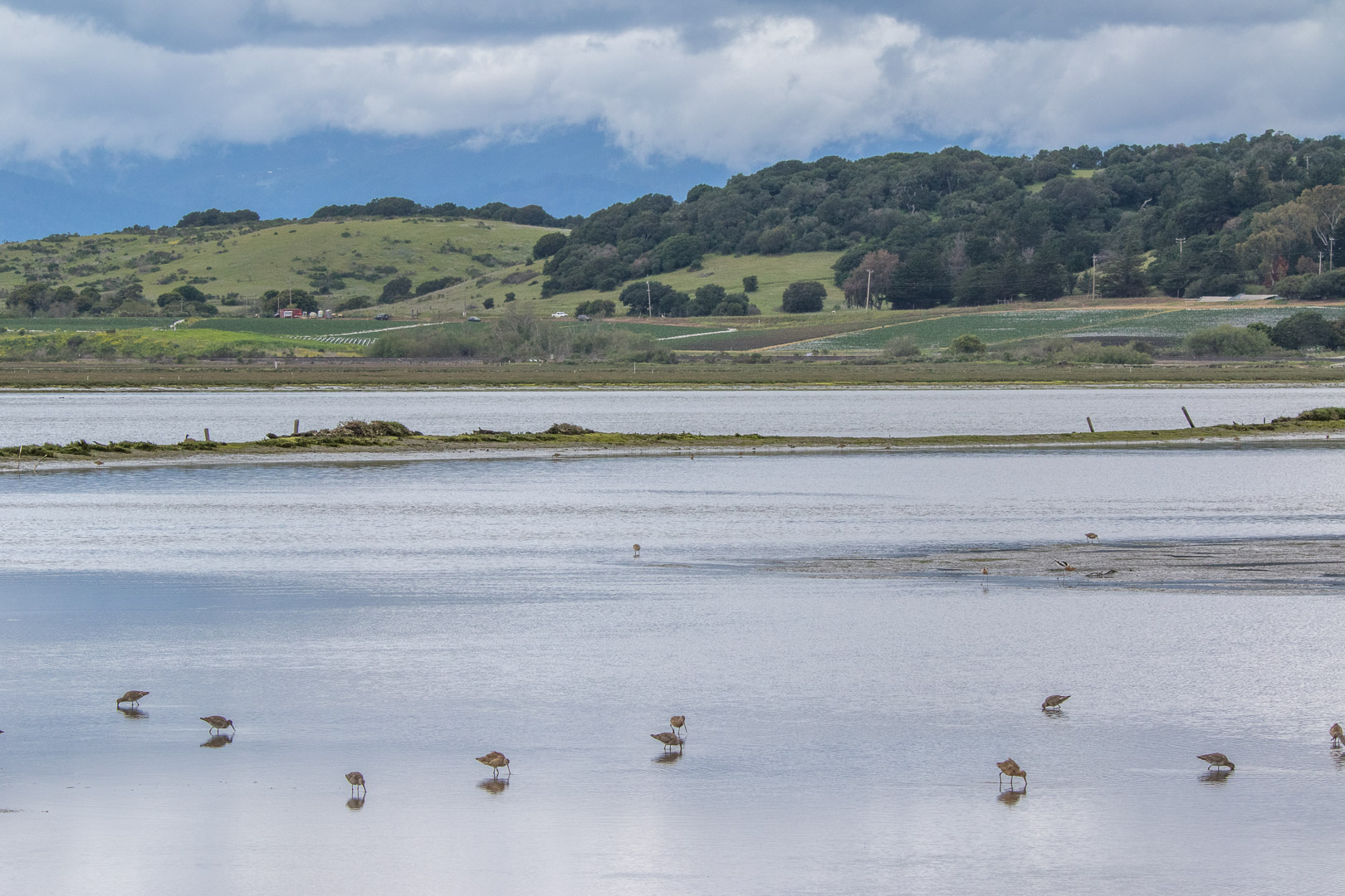 These photos were taken at two locations in the Elkhorn Slough area. The first location, (with the sea otters) was at the Moss Landing State Beach and harbor area, at the far west end of the slough. The second location was at the Elkhorn Preserve park trail area, further inland. Click on any photo to zoom and see slideshow.
